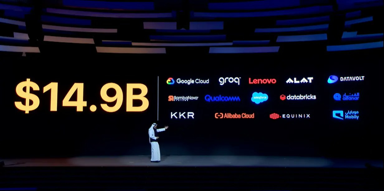 وصلت قيمة الاستثمارات والشراكات 14.9 مليار دولار ومنها تعهد أمازون باستثمار 5.3 مليار دولار لإنشاء منطقة سحابية، والتزام DataVolt باستثمار 5 مليارات دولار لتطوير مراكز بيانات (قدرة تتجاوز 300 ميغاواط)، والتزام Groq بقيمة 1.5 مليار دولار لتطوير البنية التحتية للذكاء الاصطناعي في السعودية بالتعاون مع أرامكو الرقمية، واستثمارات من الفنار بقيمة 1.4 مليار دولار مع استثمارات Equinix بمبلغ مليار دولار، وموبايلي بقيمة 905 مليون دولار، و Salesforce بمبلغ 500 مليون دولار، و Tencent Cloud بقيمة 150 مليون دولار 💸