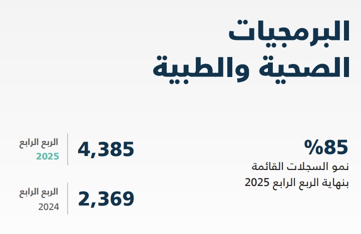 شهد 2025 نموًا بنحو 30% بعدد السجلات التجارية لمراكز الرعاية عن بعد والطلب الاتصالي مقارنة مع 2024، وهذا يؤكد توجهات المؤسسات الصحية نحو التحول في تقديم خدماتها بطرق مختلفة من جهة، وارتفاع أعداد الشركات الناشئة المقدمة لخدمات الطب الاتصالي في المملكة