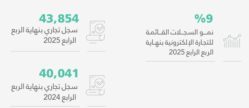 يؤكد نمو عدد سجلات التجارة الإلكترونية في 2025 استمرار توسع القطاع والفرص الموجودة فيه، وهو ما يفتح فرصة أمام المزيد من الشركات الناشئة خاصة التي تركز على الحلول الجزئية أو المتخصصة لقطاع الأعمال 💼